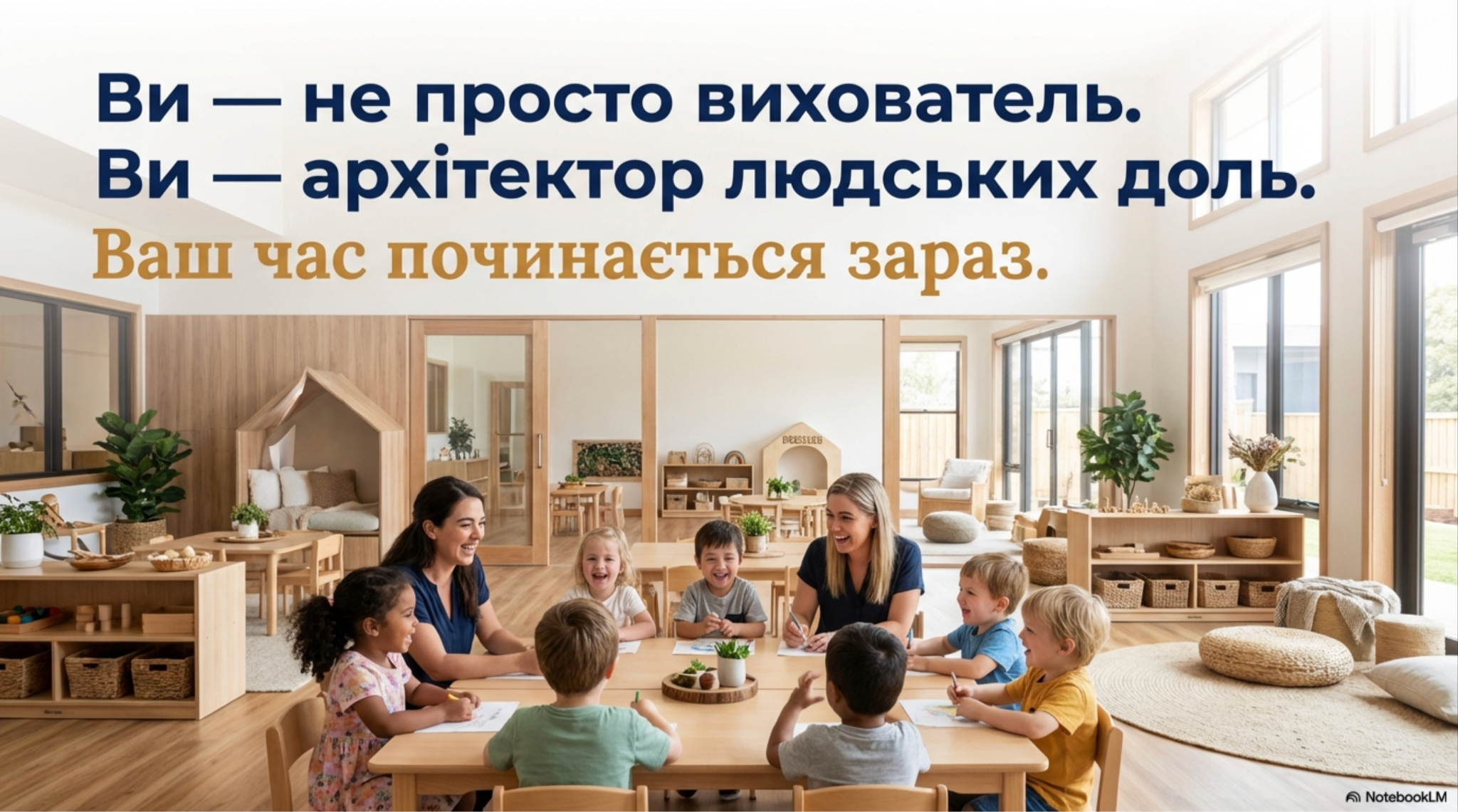 Ця криза — не просто «погана новина». Ці дані підсвічують, що традиційне уявлення про роль вихователя вичерпало свій потенціал та потребує переосмислення. Але саме тут народжується рішення, про яке ми будемо говорити. Твій вхід у професію може бути не «вимушеним кроком», а стратегічним вибором ролі, яку ми називаємо Архітектором дошкілля.